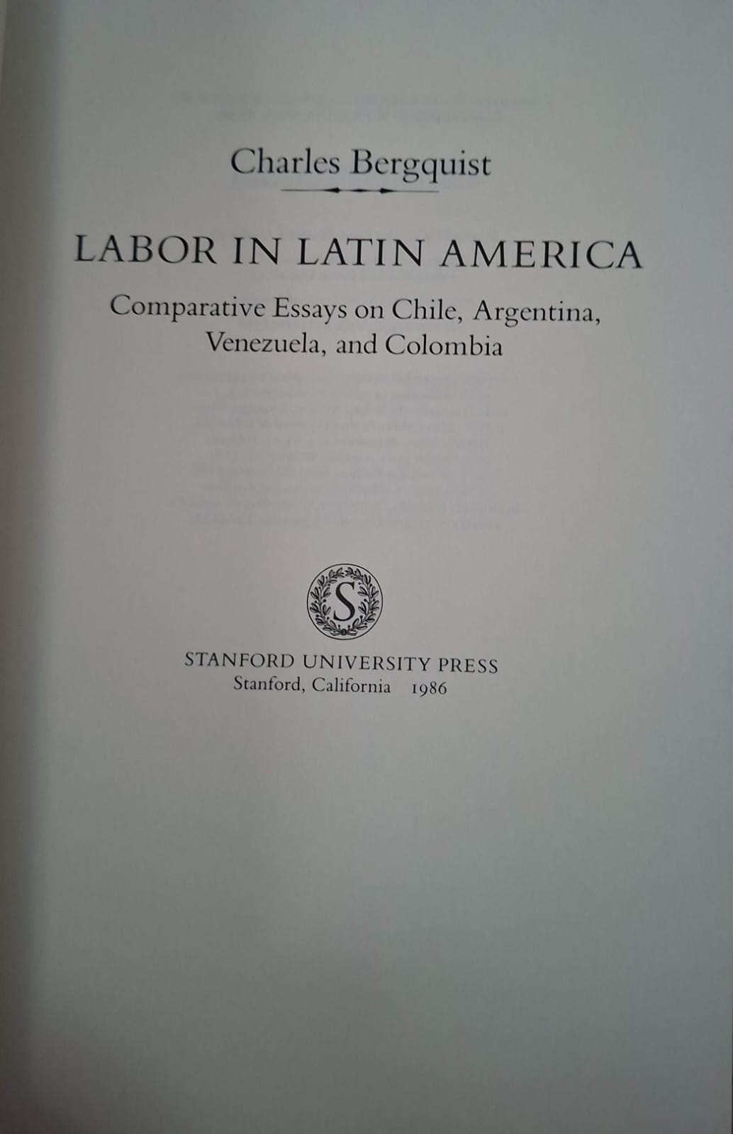 Charles Bergquist – Labor in latin america (Comparative enssays on Chile, Argentina, Venezuela, and Colombia)